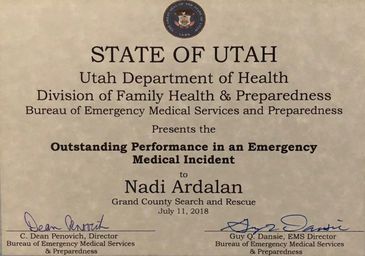 As a Captain with Grand County Sheriff's Search And Rescue (Ret. 10/2023) in Moab, he facilitated the department's off-road driver training for which he received the 2020 Commander's award. Having been a top responder for 12 y